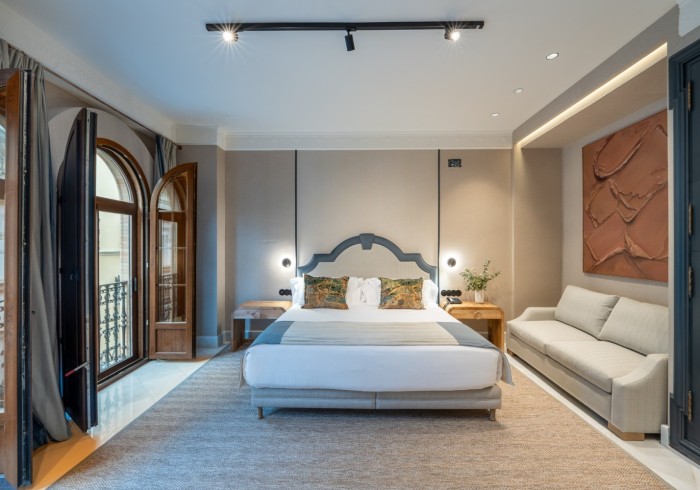 Hotel de nueva construcción con esencia sevillana, patio interior con luz natural y rooftop con jacuzzi. Descansa en una calle céntrica y silenciosa, perfecta para recorrer Sevilla a pie